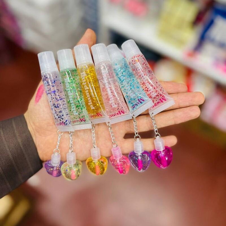 برق لب آویزدار حرارتی دوقلوی تیوپی و قلبی طرح دختر یک طرف شاین یک طرف حرارتی دارای ویتامین E آبرسان و نرم کننده لب