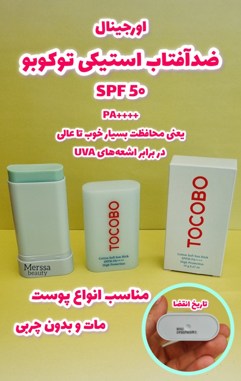 ضدآفتاب استیکی توکوبو یک ضد آفتاب با کیفیت و محبوب کره ای است که با SPF50 و PA++++ از پوست کاملا در برابر اشعههای مخرب آفتاب و آسیبهای ناشی از آن مثل پیری زودرس، لک و … جلوگیری میکند. دارای ذرات پودری بسیار ریزی است که از چرب و براق شدن پوست جلوگیری کرده و فینیش مات روی پوست ایجاد میکند. این ضد آفتاب علاوه بر محافظت بسیار بالا، بافت سبک و زود جذبی دارد که روی پوست احساس سنگینی ایجاد نکرده و از ماندگاری طولانی مدتی برخوردار است. ترکیبات ضد افتاب استیکی توکوبو به گونه ای طراحی شده که علاوه بر کنترل ترشح چربی، پوست را رطوبت رسانی کرده و آن را التیام میبخشد.