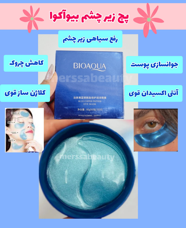 💥ماسک پچ زیر چشم پپتاید مس آبی💥 بیوآکوا دارای ۶۰ عدد پچ