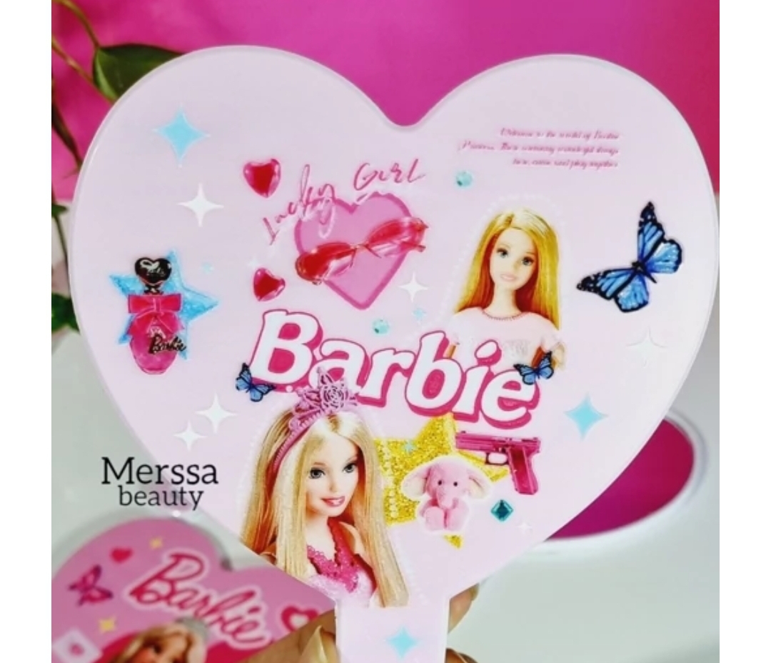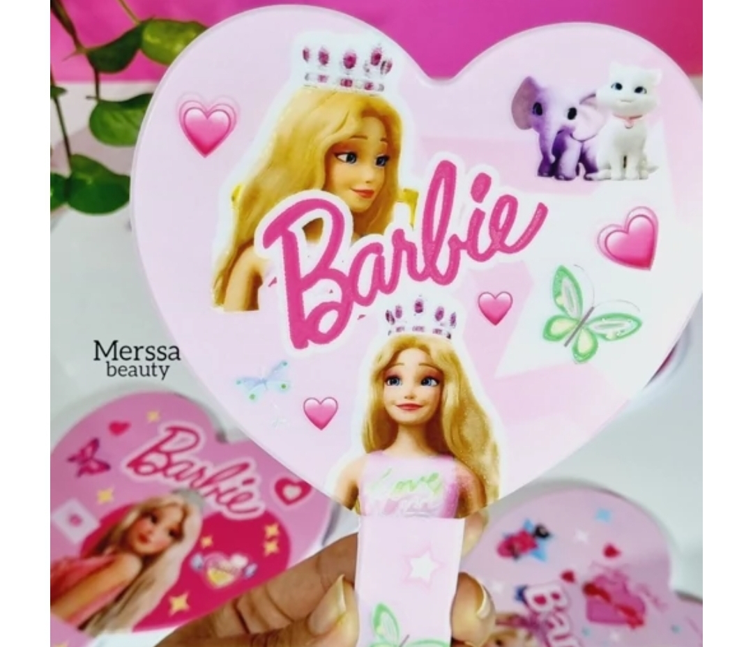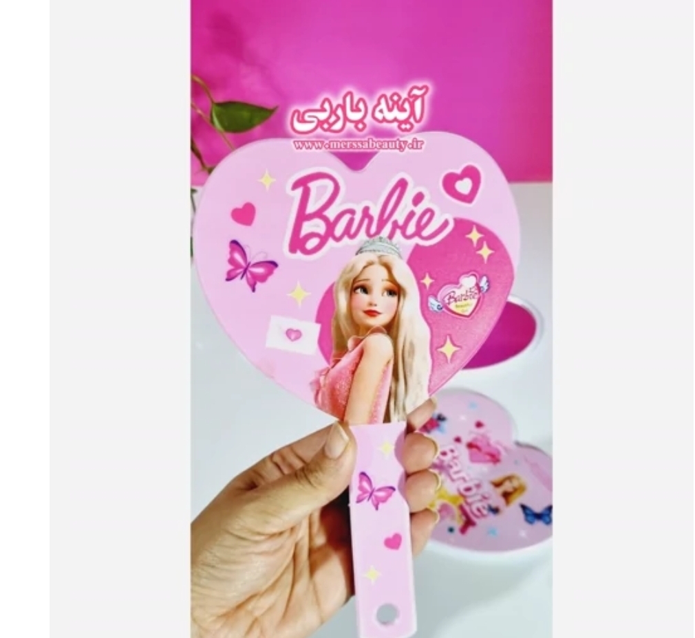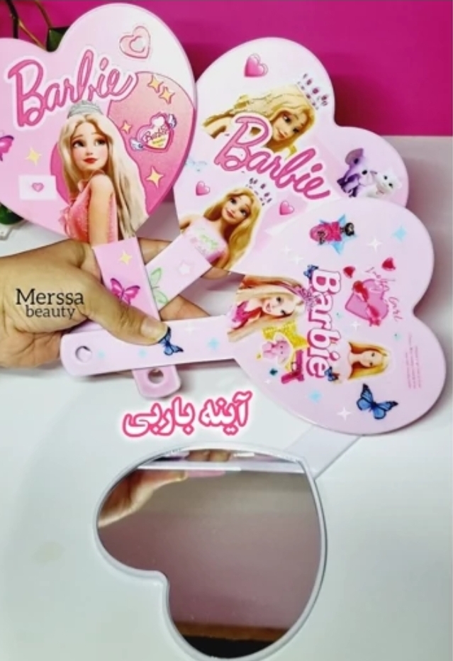 آینه دستی طرح باربی صورتی در 3 طرح وارداتی