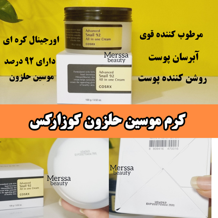 ⚪️کرم موسین کلاژن ساز و ترمیم کننده و ضد چین و چروک حلزون کوزارکس COSRX Advanced Snail 92 All in one Cream 100g